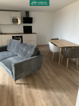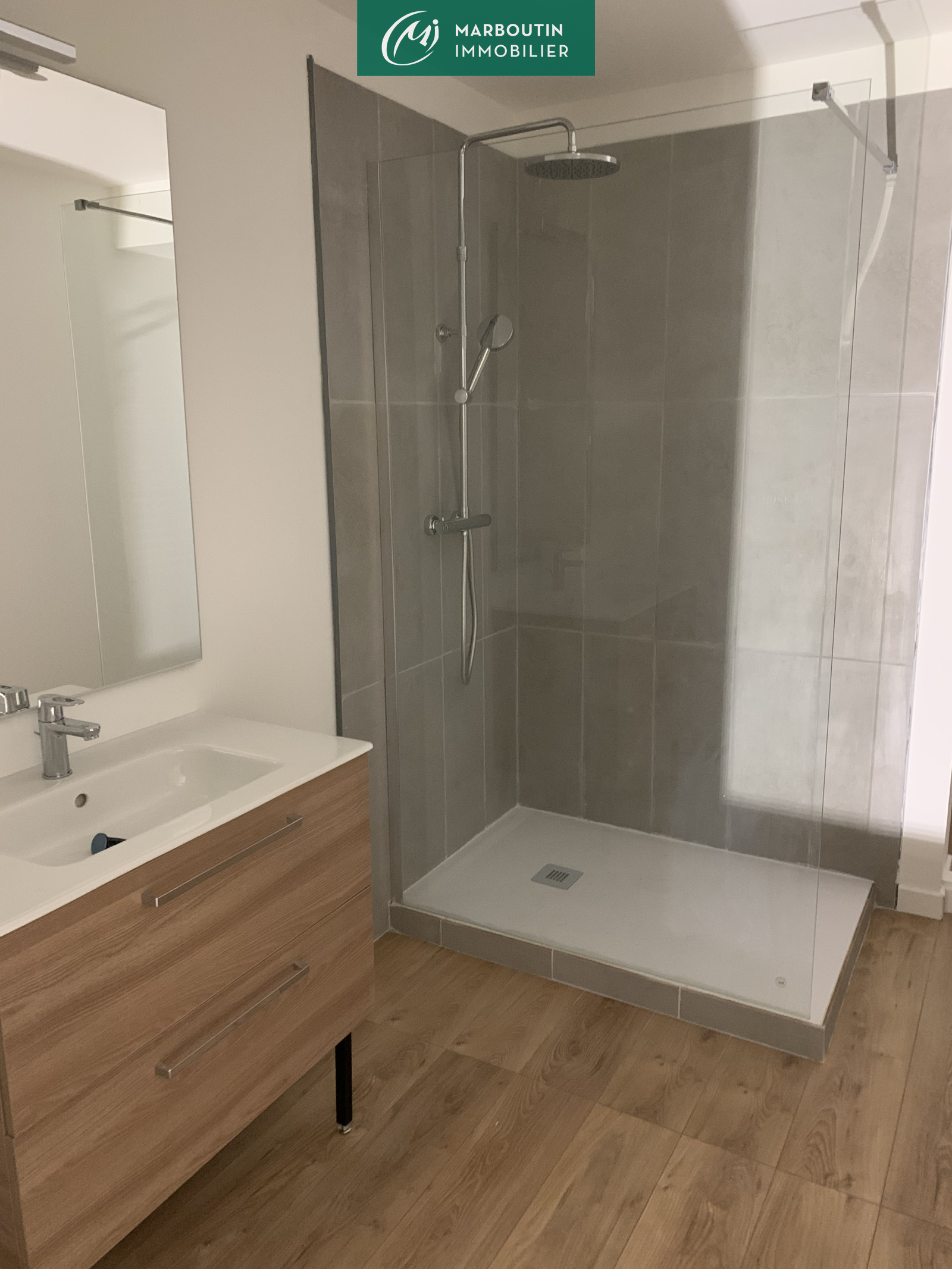 Appartement T2 de 63.21 m² habitables composé d'une entrée, d'un séjour de 23.19 m² avec cuisine aménagée, une chambre de 19.38 m², un dressing et une salle d'eau avec wc. L'appartement se situe au premier étage d'un immeuble en copropriété entièrement rénové, dans le centre historique de Casteljaloux.