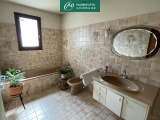 EXCLUSIVITE - Maison de 121 m² habitables composée en rez de chaussée d'une entrée, cuisine, salon de 35 m² avec cheminée foyer ouvert, un cellier, une chambre avec salle d'eau et un wc.