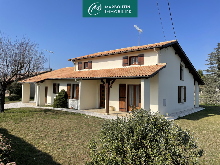 A l'étage se trouvent 2 chambres supplémentaires, un salle de bains, et un bureau. La maison dispose également d'un garage de 28.5 m², d'une cave, et de 2 terrasses, l'ensemble se trouvant sur un terrain de 939 m² clos.
