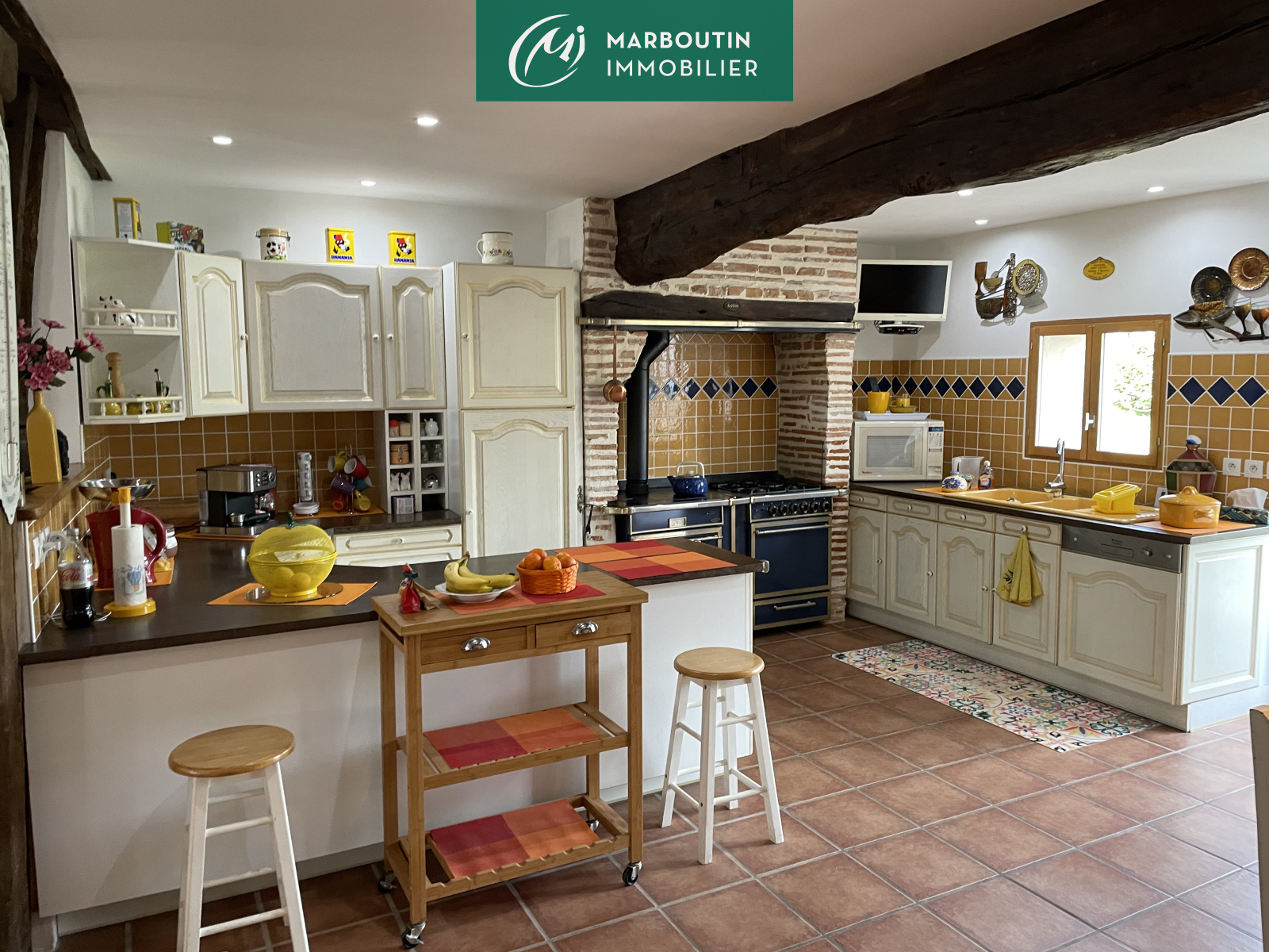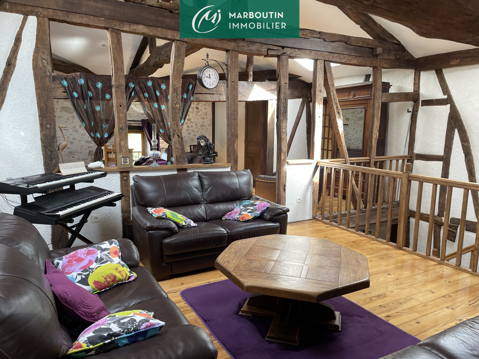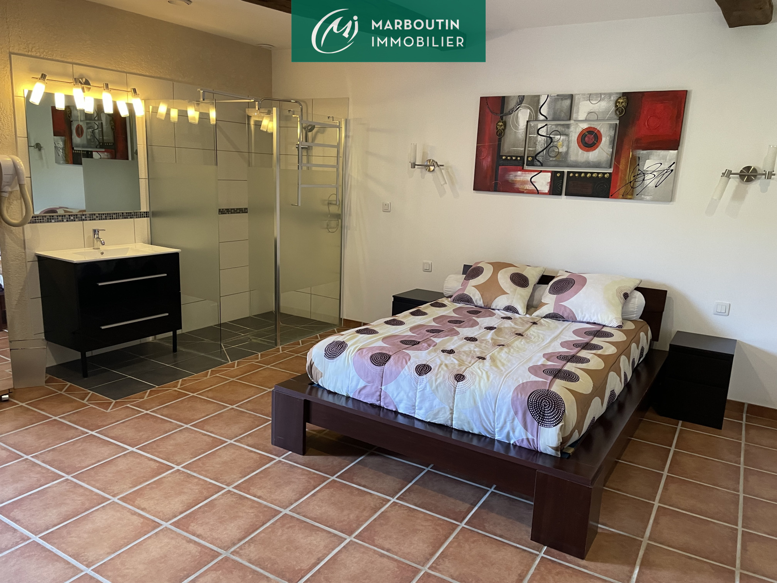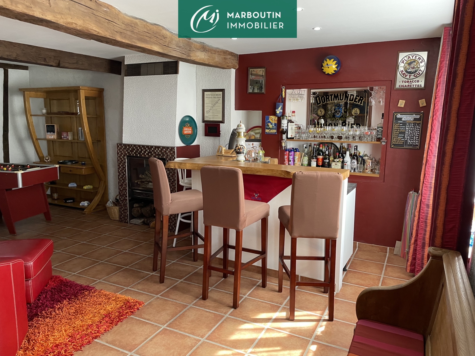 Belle Maison de Bourg en pierres d'environ 330 m² habitables, comprenant en rez de chaussée une grande pièce de vie de 45 m², cuisine ouverte aménagée, un coin bar, une chambre parentale, et une buanderie.