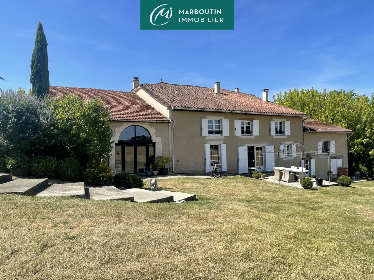 Située à 3 min de Casteljaloux, magnifique maison bourgeoise d'une superficie habitable totale de 500 m², comprenant une partie principale de 255 m² avec en rez de chaussée une entrée, une cuisine, un salon, un séjour de 45 m², un bureau et un wc. A l'étage se trouvent 2 chambres, une salle d'eau et un studio de 35 m².