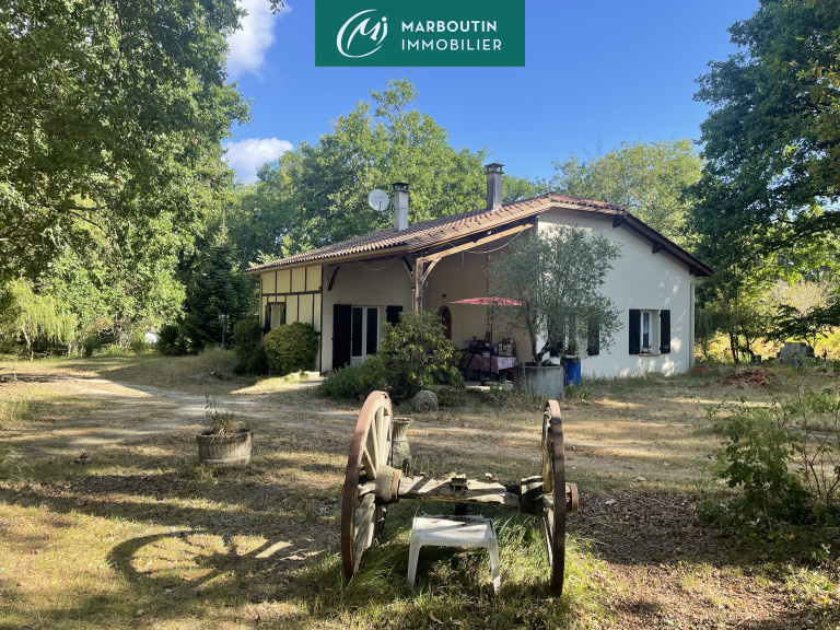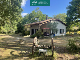 Maison de campagne de 115 m² habitables composée d'une grande pièce de vie de 60 m² avec cuisine ouverte, un cellier, une salle d'eau avec baignoire et douche, une chambre de 10.5 m² et une mezzanine de 34 m². La maison dispose également d'un garage attenant de 39 m², d'un second garage / atelier indépendant de 16 m² et abris voiture, diverses terrasses, l'ensemble se trouvant sur un airial de 5350 m², dans un environnement calme et paisible.
