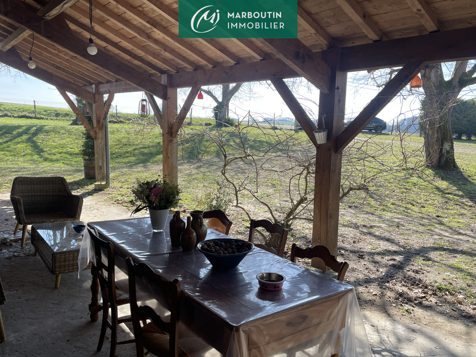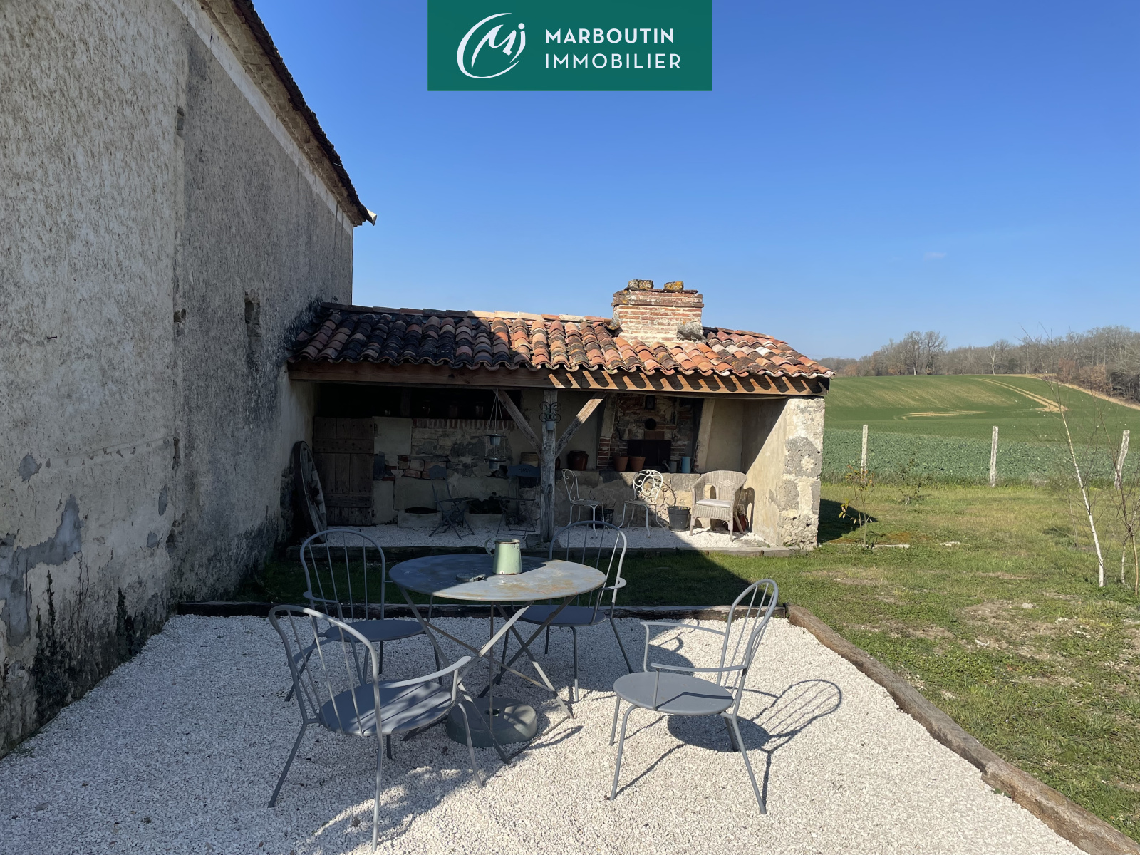 A 8 km de Casteljaloux, Maison de campagne de 105 m² habitables entièrement de plain pied, comprenant une piece de vie de 37 m² avec cuisine ouverte, un couloir desservant 3 chambres et une salle d'eau, et terrasse d'été. La propriété dispose également d'une grange attenante de 120 m² aménageables, d'une dépendance de 80 m², d'une terrasse couverte de 40 m², l'ensemble se trouvant sur un terrain de 3094 m² clos.