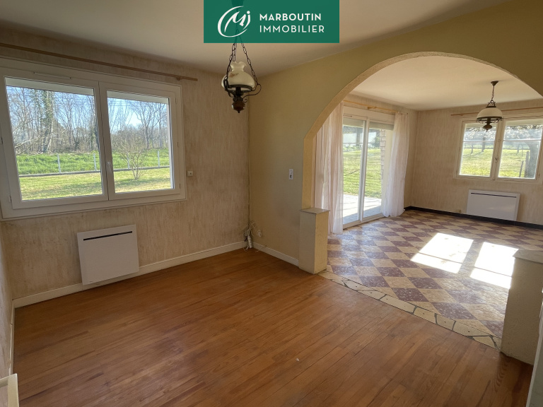 Maison des années 60 à rafraichir, composée d'une entrée, un couloir, une cuisine semi-équipée, un salon / séjour avec insert à bois, 2 chambres, une salle d'eau et un wc. La maison dispose également d'un garage indépendant, d'un abris de jardin et d'un ancien poulailler, l'ensemble se trouvant sur un terrain clos d'environ 4000 m².