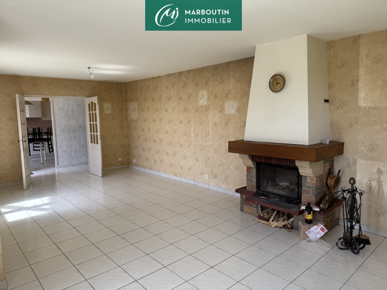 Maison de plain pied de 111 m² habitables, à rafraichir, composée d'une entrée, un séjour avec insert, une cuisine équipée, un couloir desservant 3 chambres, une salle d'eau, un bureau et un wc. La maison dispose également d'un cellier, d'un garage attenant de 22.5 m², et une dépendance de 20 m², le tout se trouvant sur un terrain de 749 m² .