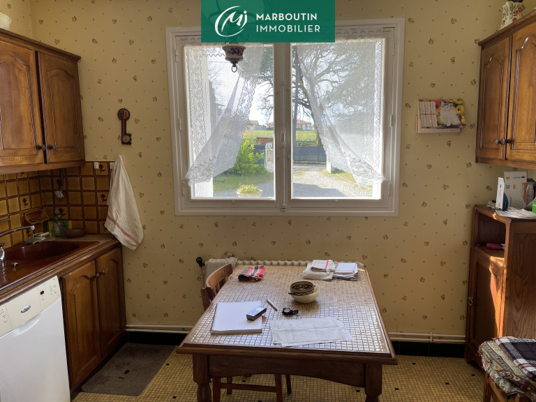 Maison de 75 m² à rafraichir, composée d'une entrée ouvrant sur une cuisine, un séjour de 30.5 m², 2 chambres, un bureau, une salle d'eau et un wc. La maison dispose également d'un garage de 44.5 m², un garage indépendant de 43 m², et un appartement indépendant de 38 m² à restaurer entièrement, le tout se trouvant sur un terrain d'environ 1 400 m².