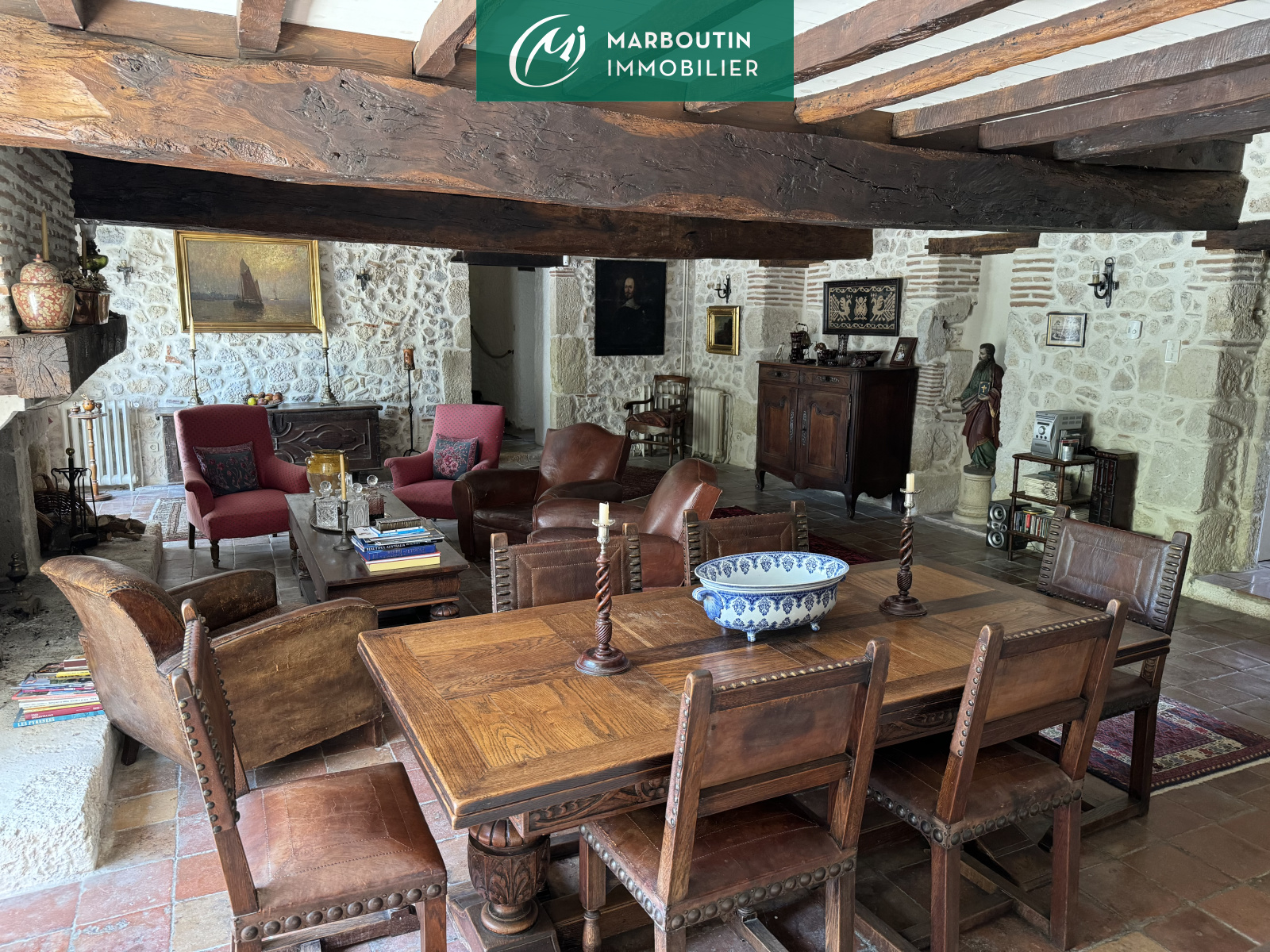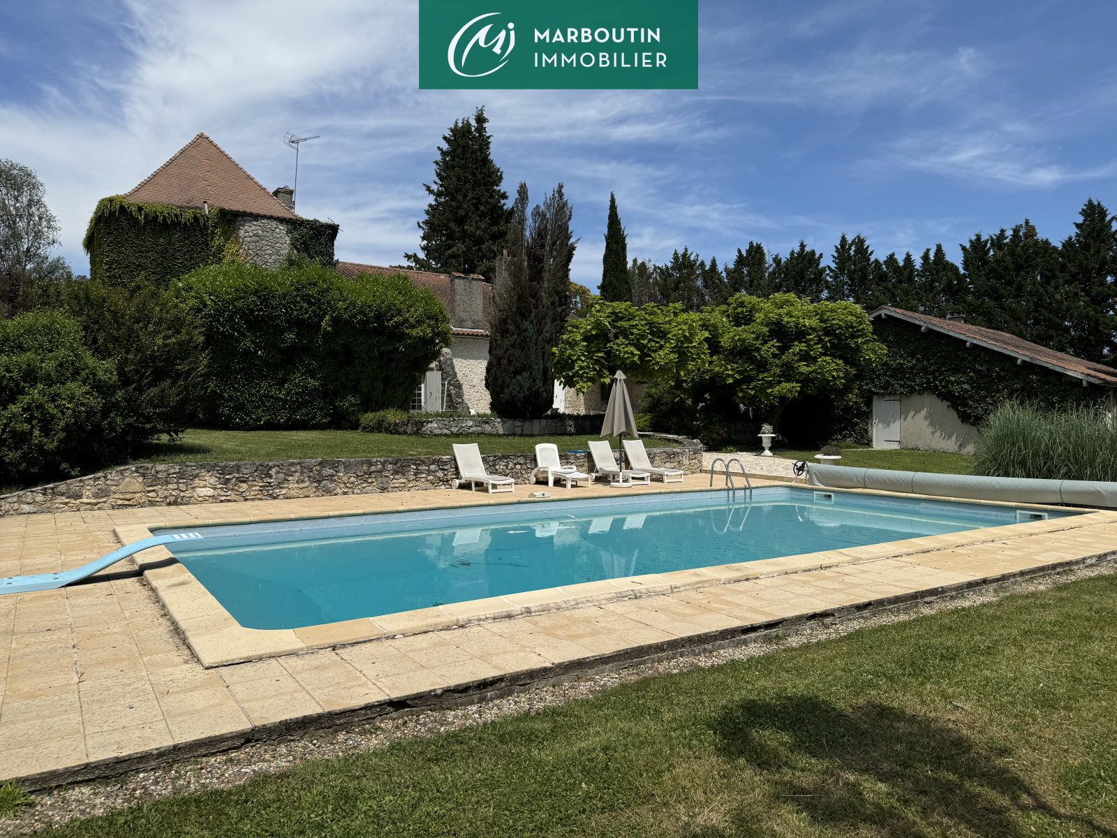 Aux portes de Casteljaloux, magnifique demeure de 345 m² habitables, composée d'un grand séjour de 57 m² avec cuisine ouverte, un salon, une chambre, une salle de bains, un bureau, une buanderie et un wc. A l'étage se trouvent une mezzanine ouvrant sur 4 chambres supplémentaires, une salle d'eau, un dressing et un débarras. au 2e étage se trouvent un second salon de 39 m². La propriété dispose également d'une grande terrasse avec coin barbecue, d'une piscine traditionnelle 12x6 (chlore) avec PAC, d'un appartement indépendant de 70 m² (séjour, cuisine ouverte, 2 chambres et une salle d'eau), d'un double garage, d'une grange et diverses petites dépendances ,d'un cour de tennis, le tout se trouvant sur un parc d'1Ha.