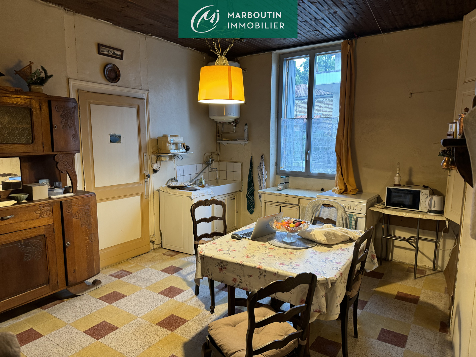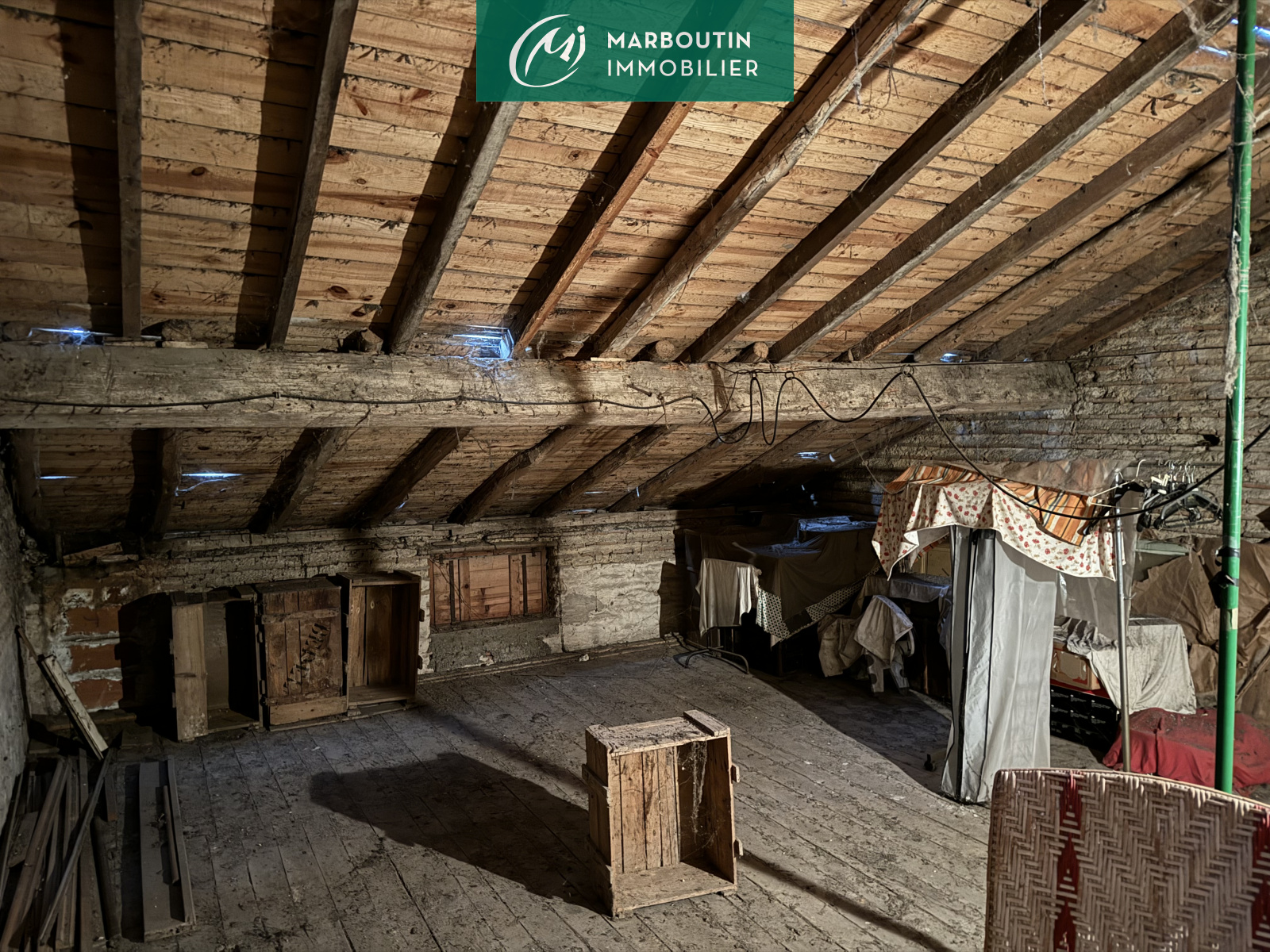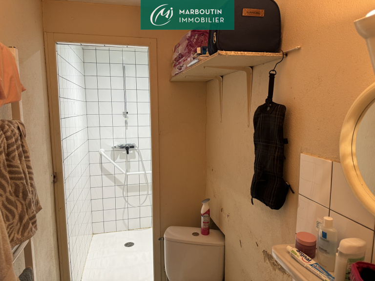 MAS D'AGENAIS - Maison de village de 90 m² habitables à rafraichir comprenant en rez de chausséeune entrée ouvrant sur une cuisine semi-équipée, un salon et une salle d'eau avec wc. A l'étage se trouvent 2 chambres dont une avec salle d'eau, et en R+2 un grenier aménageable de 30 m². La maison dispose également d'une petite terrasse couverte, d'une dépendance faisant office d'atelier, le tout se trouvant sur un terrain de 280 m².