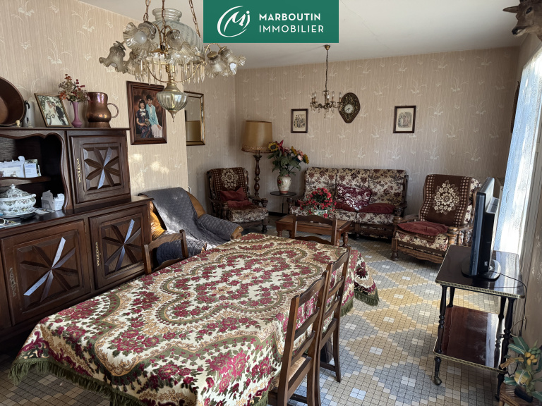 Maison de 85 m² habitables, à rafraichir, composée d'une entrée ouvrant sur un séjour de 26 m², une cuisine 1/2 équipée, ou couloir desservant 3 chambres, une salle de bains et un wc. La maison dispose également d'un garage attenant de 22 m², le tout se trouvant sur un terrain clos de 720 m².