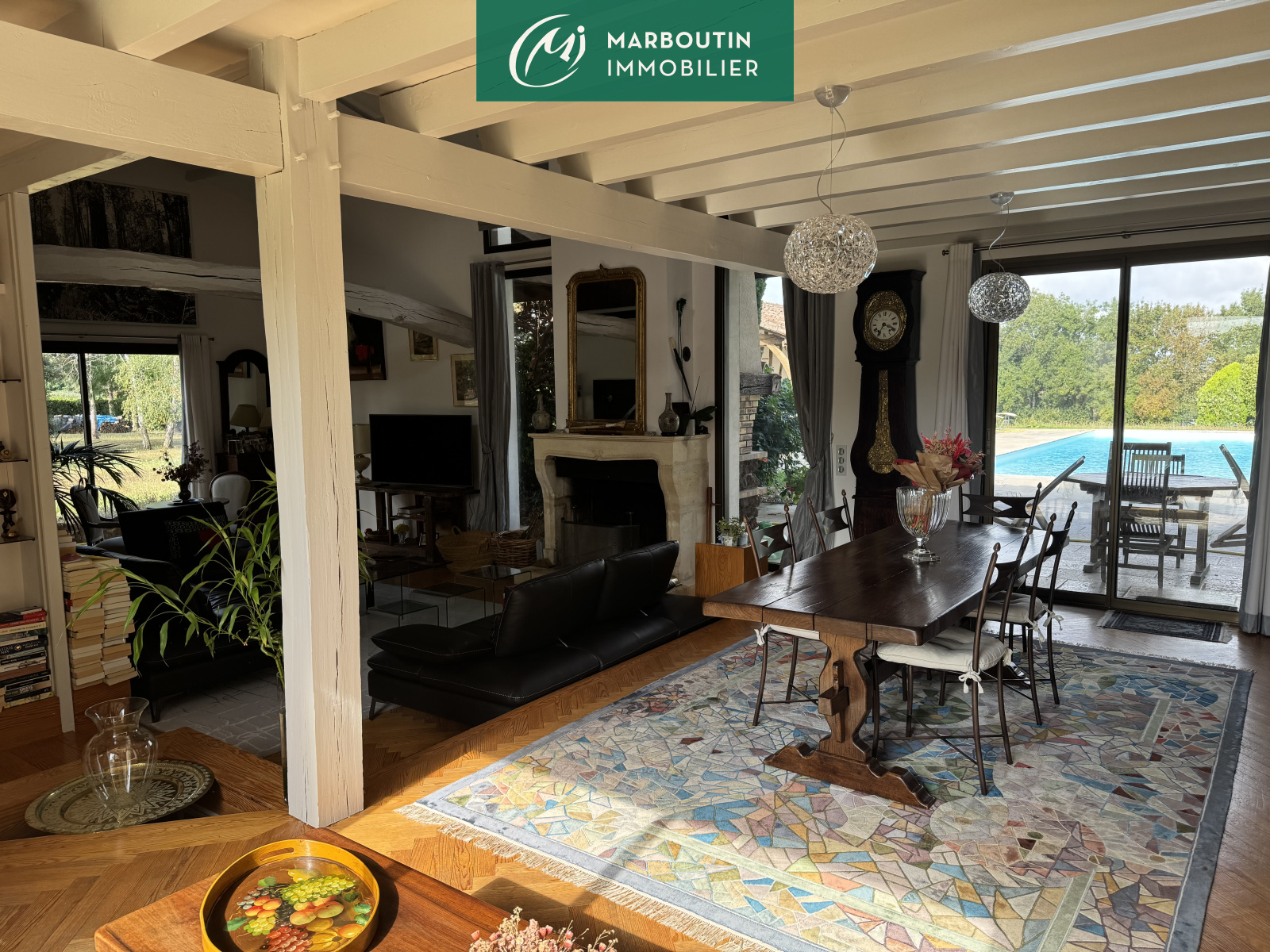 La maison dispose également d'un poolhouse de 55 m² en colombages avec terrasse couverte, cuisine d'été et sanitaire, une piscine au chlore 14x6, d'un garage de 35 m², d'une cave à vin, le tout se trouvant sur un parc de 8.000 m².