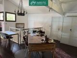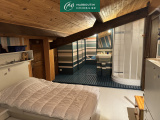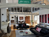 A l'étage se trouve une grande mezzanine surplombant le séjour, un chambre supplémentaire avec douche et un Sauna.