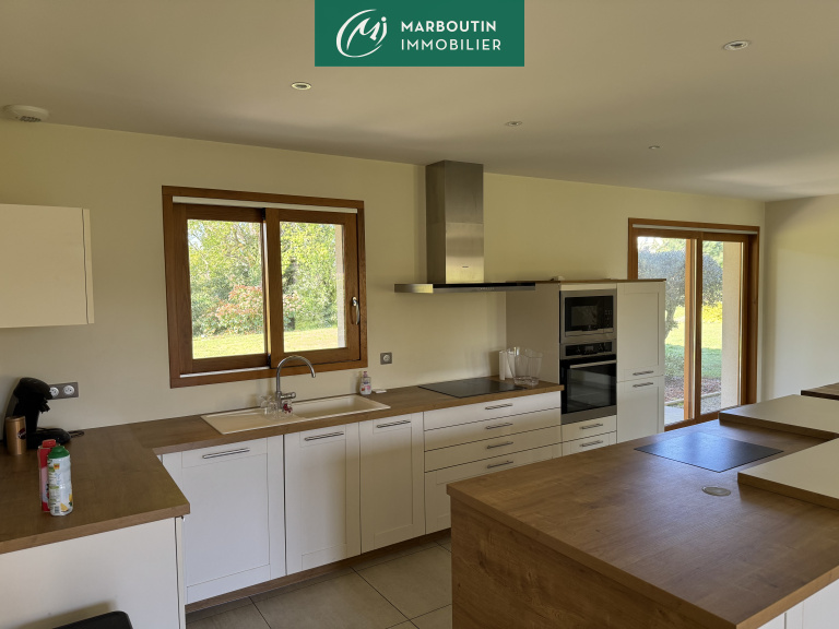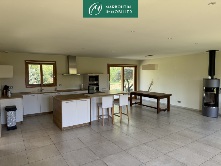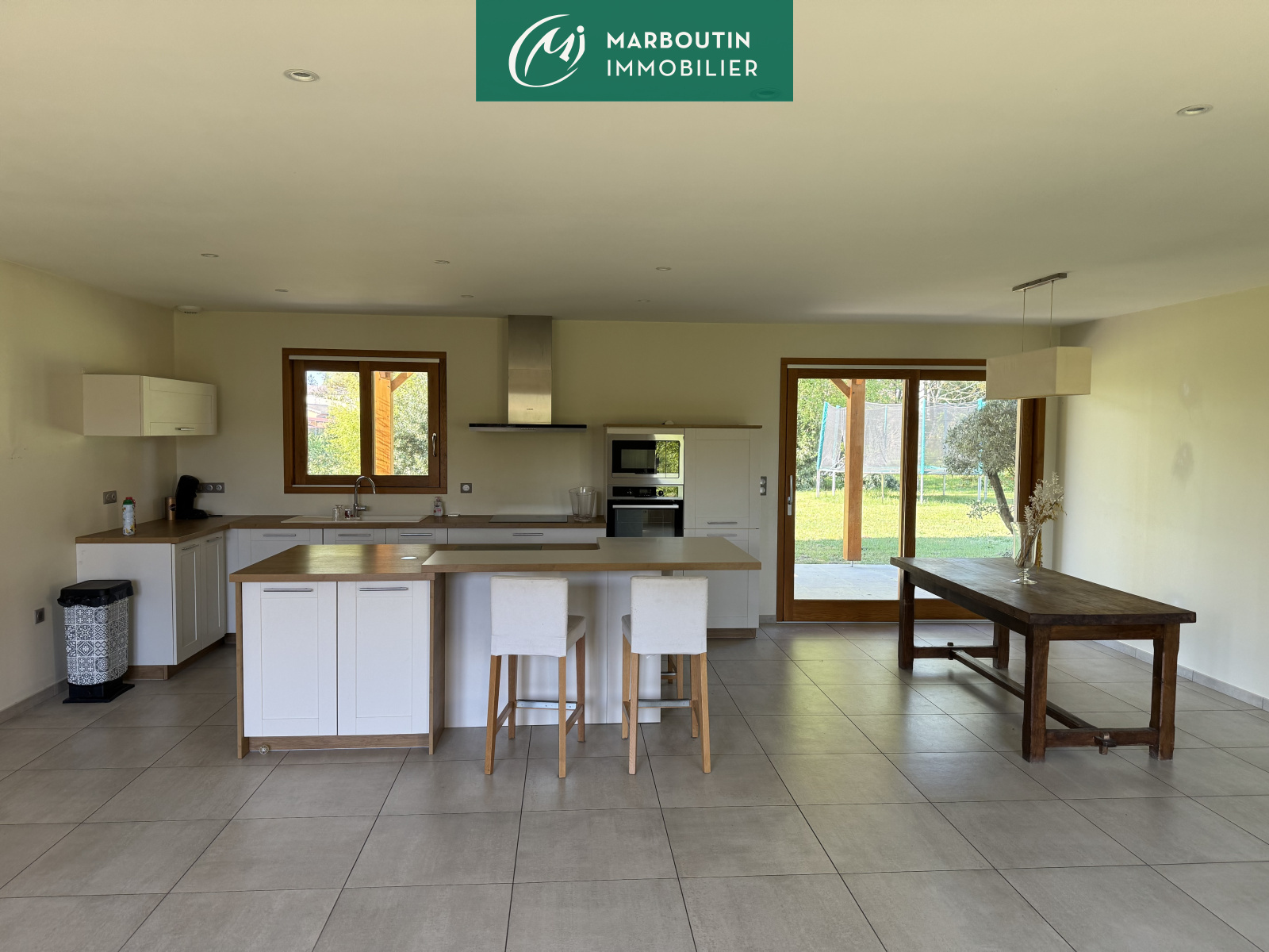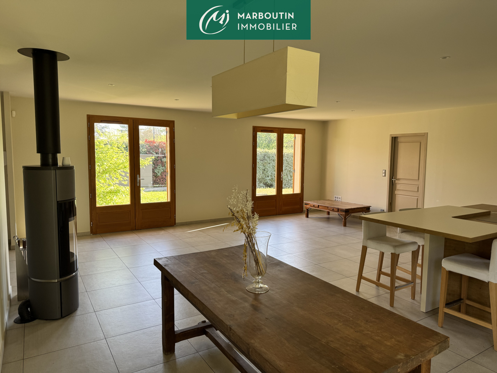 Au coeur d'un village avec commodités, venez découvrir cette villa contemoraine de 154.5 m² habitables, composée d'une entrée ouvrant sur une grande pièce de vie et cuisine américaine, un cellier / buanderie, 4 chambres dont une chambre avec salle d'eau et wc, une salle de bains indépendante, et un wc. La maison dispose également d'une piscine traditionnelle, diverses dépendances et garages, le tout se trouvant sur un terrain de 2600 m².
