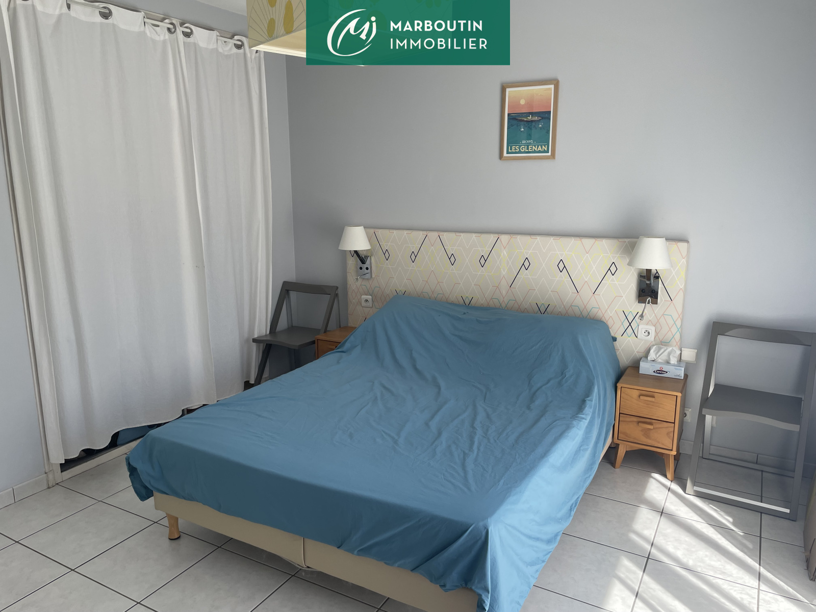 A l'étage se trouvent une mezzanine servant de bibliothèque et une chambre avec petite terrasse.