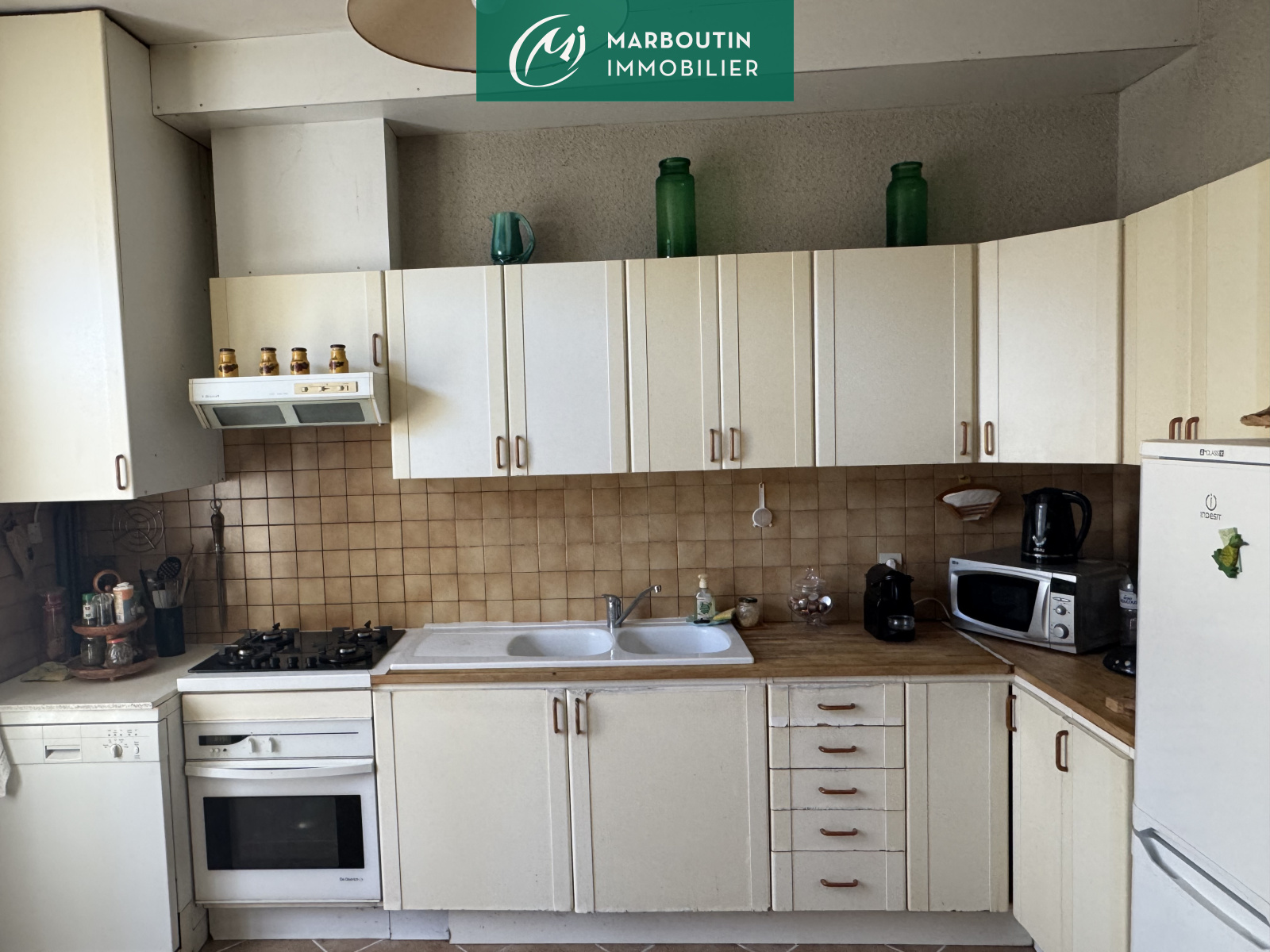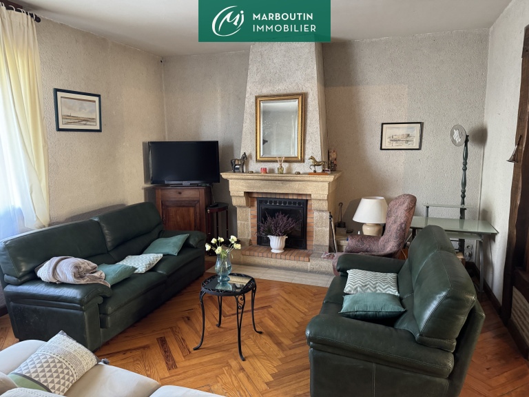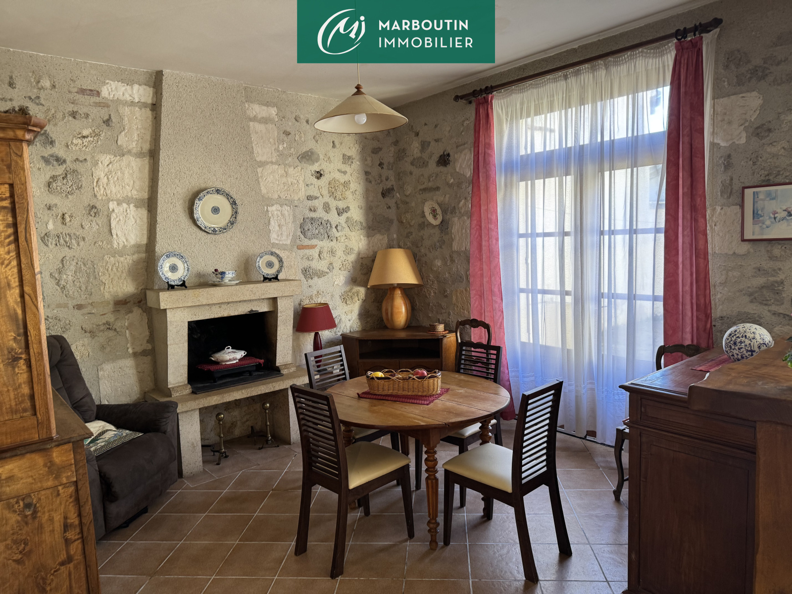 Houeilles - Maison de village de 128.5 m², mitoyenne sur 2 cotés et composée en rez de chaussée d'une entrée ouvrant sur un grande pièce à vivre avec cuisine aménagée ouverte, coin repas et salon avec cheminée (insert). A l'étage se trouve un palier ouvrant sur 3 chambres, une salle d'eau et un wc.
