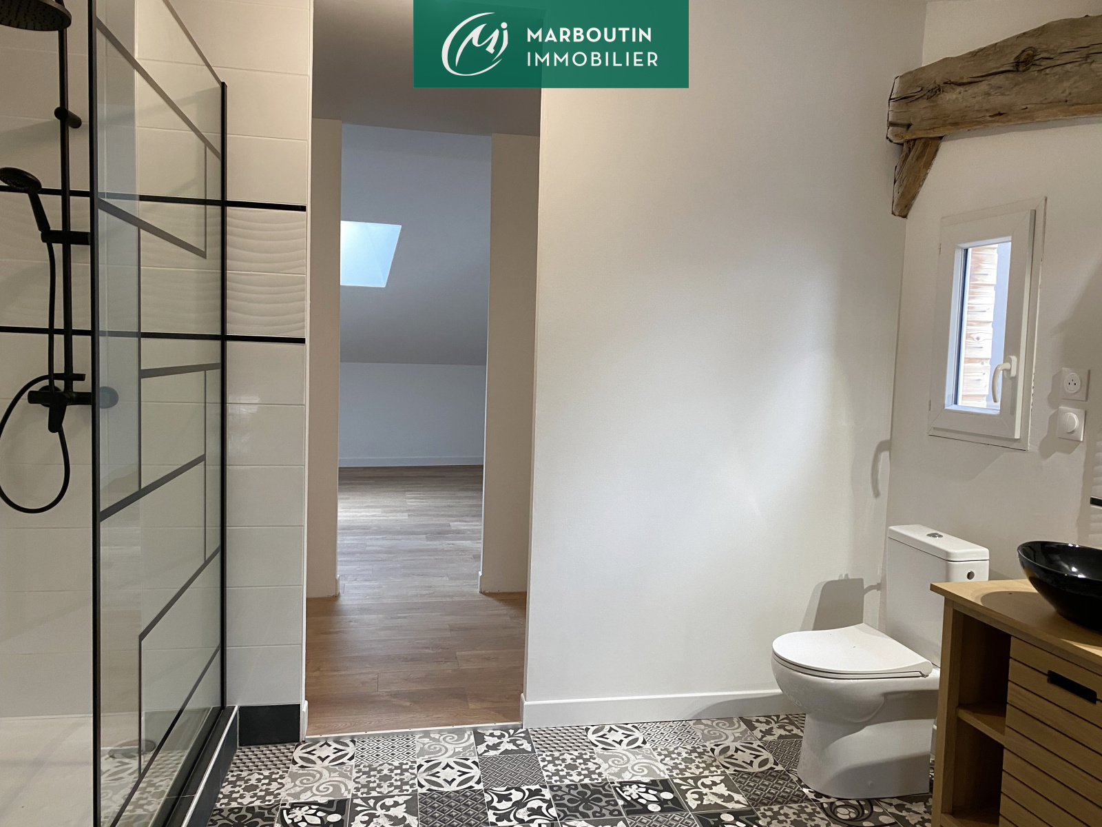 Exclusivité Marboutin ! A 10 min de Marmande, au coeur d'un village avec toutes commodités, venez découvrir cette maison de ville entièrement rénové en 2021, vous y découvrirez, en rez de chaussée, une entrée desservant d'un coté une pièce indépendante type local avec WC ainsi qu 'un cellier et de l'autre coté un grand garage de 40m² avec portail électrique. Au premier étage on retrouve une belle pièce de vie avec cuisine ouverte et poèle à bois, un sas distribuant deux chambres, une salle d'eau et WC séparé. Au second on retrouve une suite parentale avec dressing et salle d'eau privative, un dégagement et une belle terrasse bois sans vis à vis.