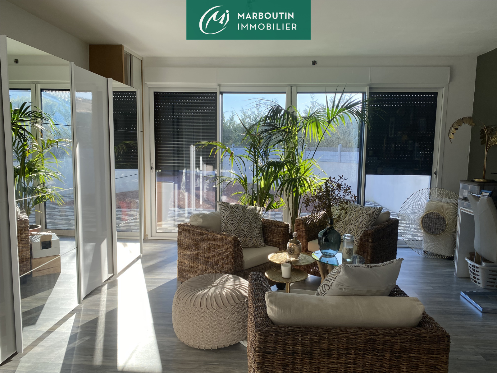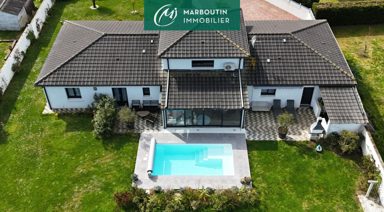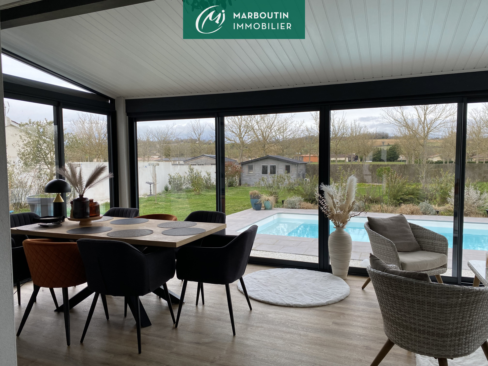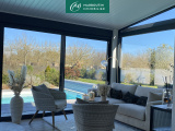 Exclusivité MARBOUTIN !!! A 15 min de Marmande, venez découvrir cette belle villa entièrement de plain-pied de 185 m², elle offre une agréable pièce de vie de 70m² avec salon/séjour et cuisine équipée ouverte. La pièce de vie donne sur une belle véranda de 20m² avec clim réversible et un accès sur la piscine au sel (6x4), on retrouve un couloir desservant 4 chambres dont 3 avec placards et une avec salle d'eau, une salle de bain, un bureau et des WC séparés avec lave mains. Le bien dispose également d'un cellier, d'un garage avec portail automatique, d'un carport, d'un cabanon de jardin et d'un puits. La maison est équipée d'un chauffage au sol par aérothermie, de clims réversibles, d'un poêle à bois et d'un assainissement avec une microstation. Le tout est implantée sur un terrain de 1745 m² arboré avec portail électrique. RARE !