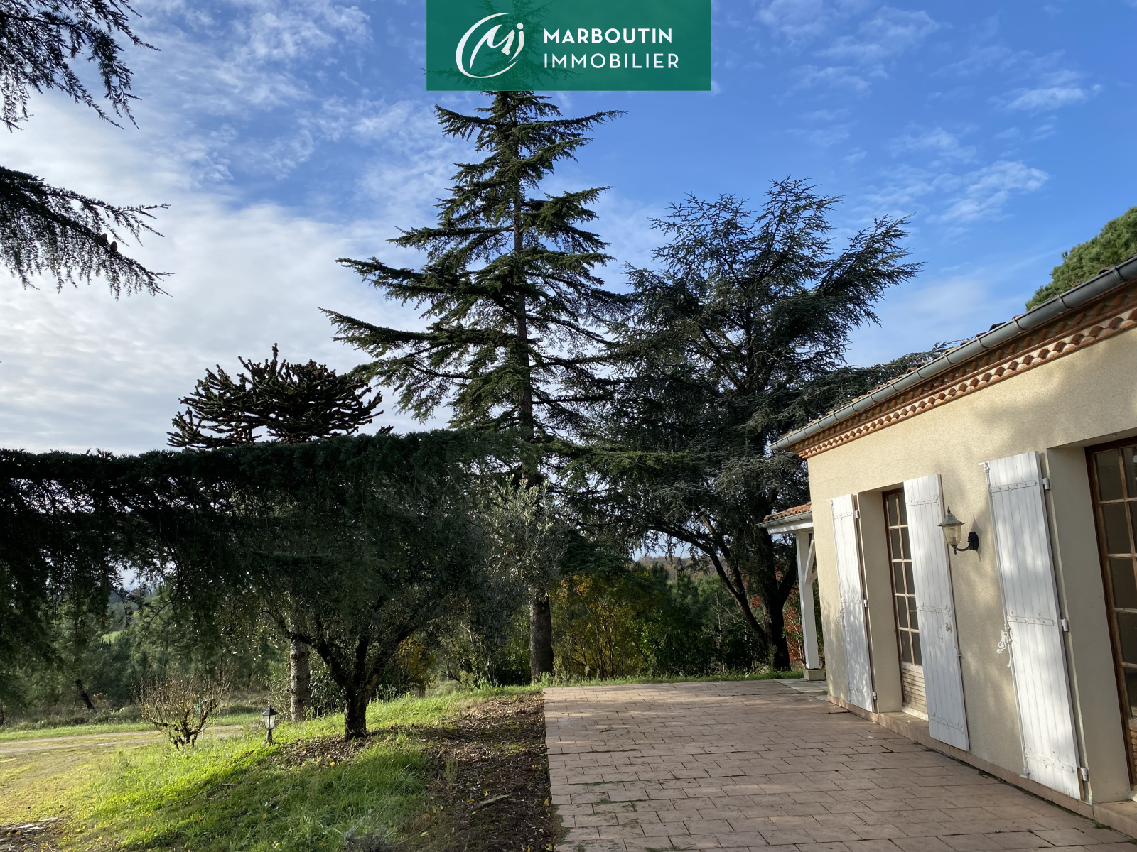 Exclusivité Marboutin ! Venez découvrir sur les coteaux Marmandais dans un cadre calme et agréable, cette maison sur sous sol de construction traditionnelle, elle comprend une entrée, un salon séjour avec cheminée, une cuisine aménagée, 4 chambres, un bureau, une salle de bain, WC, cellier, garage, sous sol avec cave, terrasse couverte , l ensemble est implanté sur un terrain de 7973m².