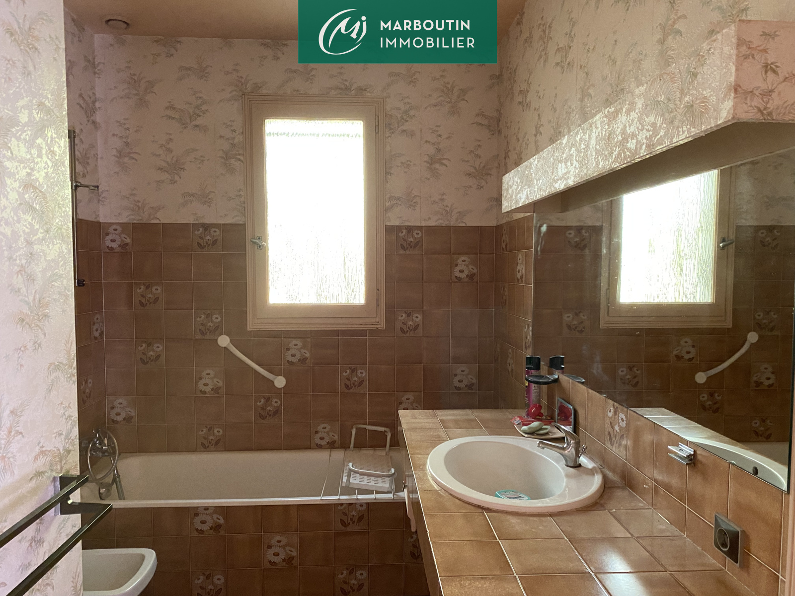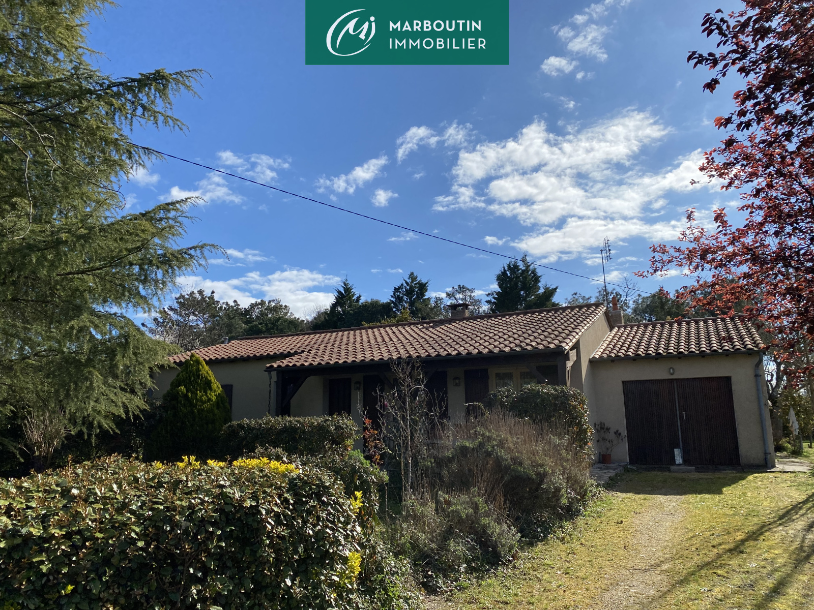 Exclusivité MARBOUTIN ! A Marmande dans un cadre calme et agréable venez découvrir cette maison de construction traditionnelle de 102m² à rafraichir, elle comprend une entrée, un salon séjour avec cheminée ouverte, une cuisine aménagée, 3 chambres, salle de bains, cellier, WC, garage, dépendance de 42m², puits, terrain en partie arboré sur une une parcelle de 8301m².