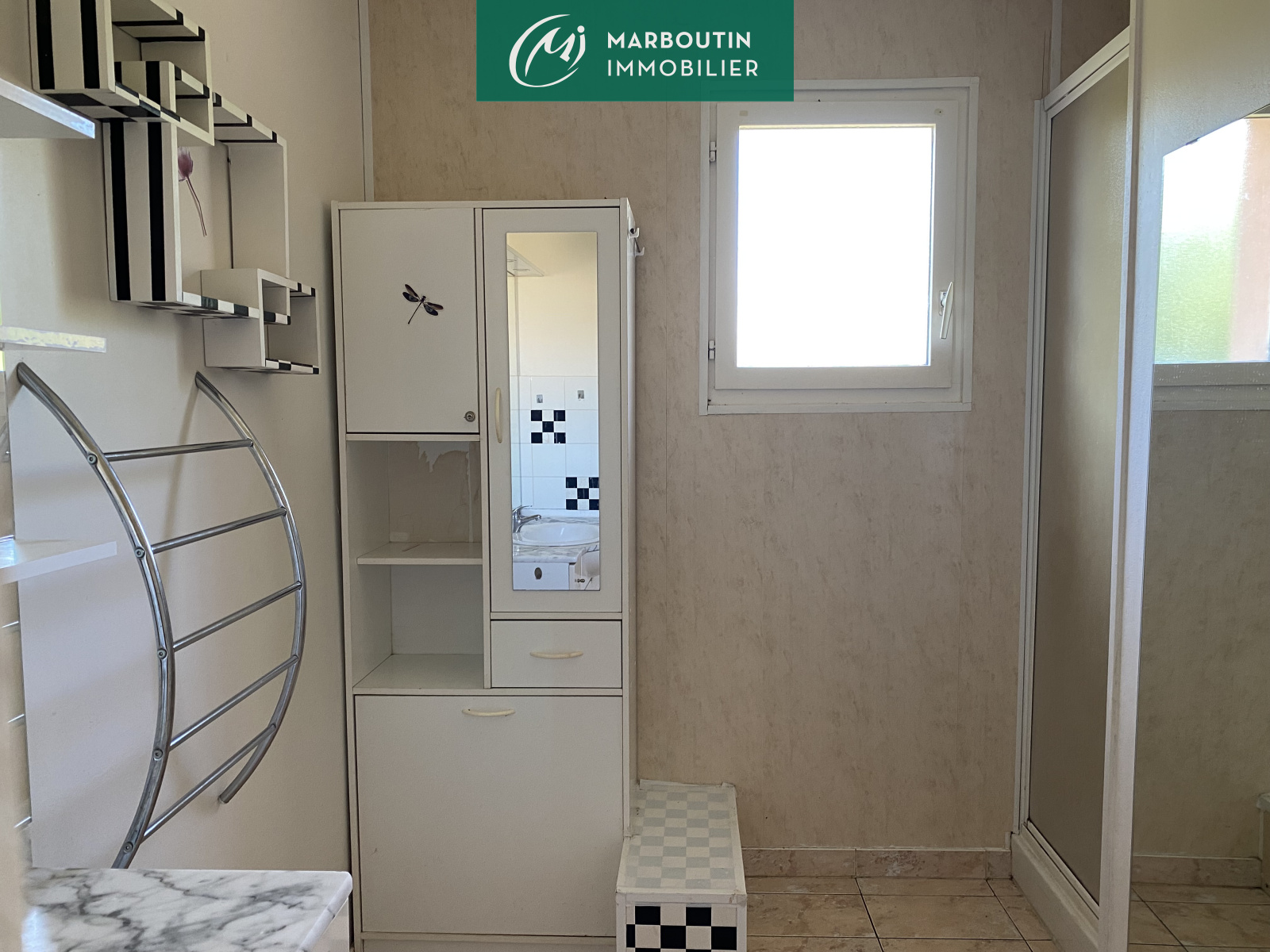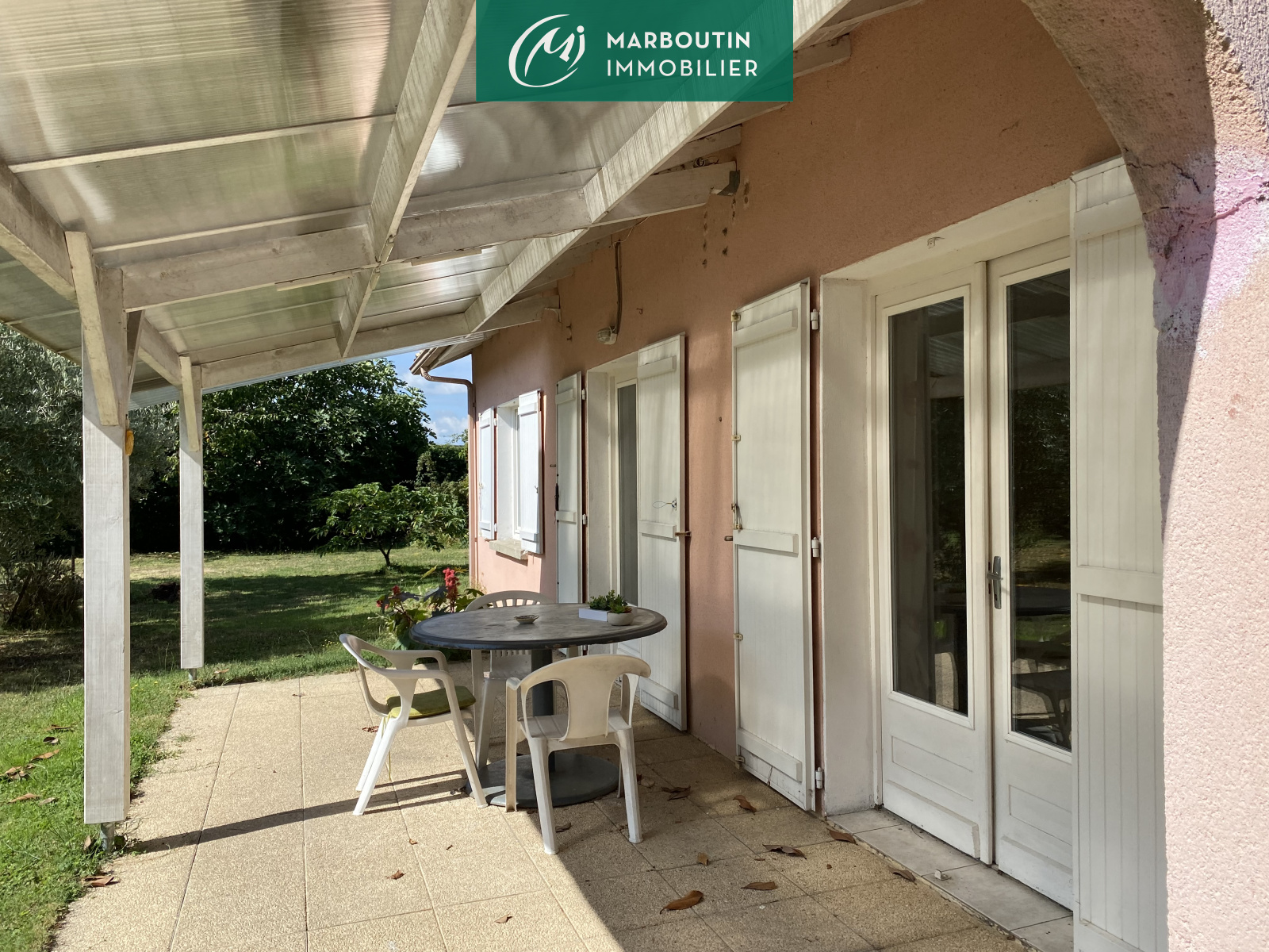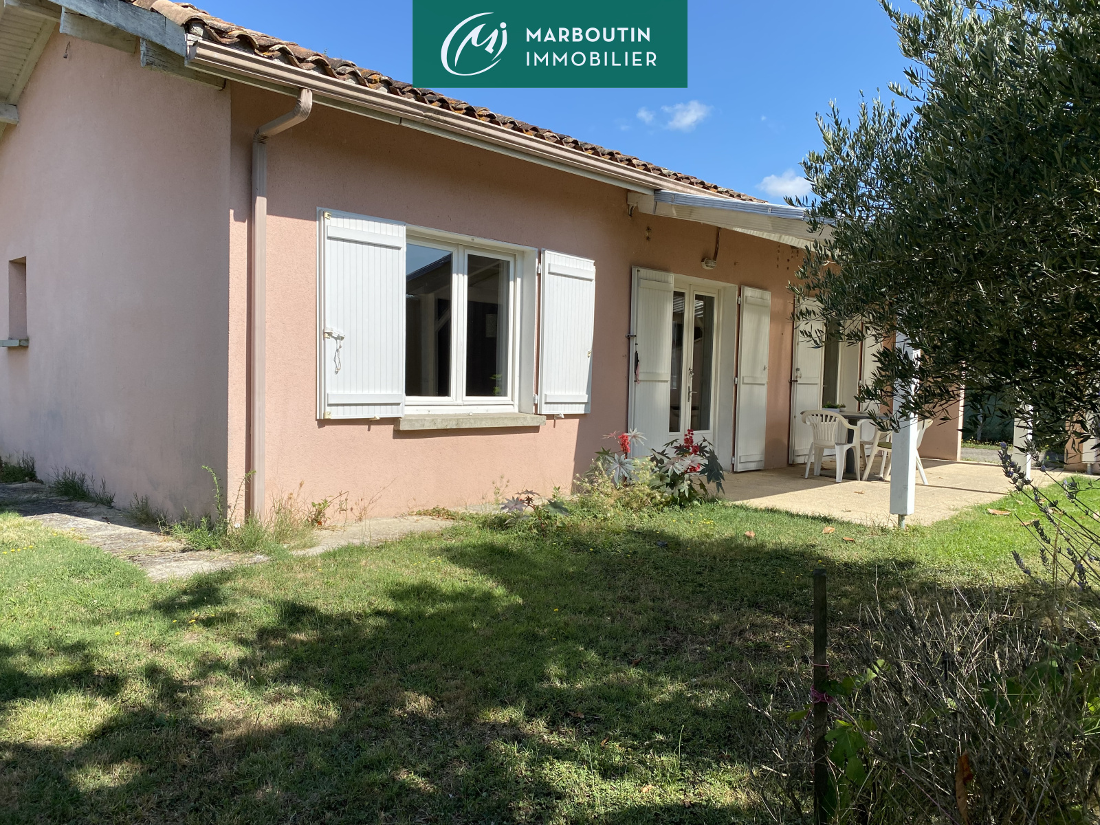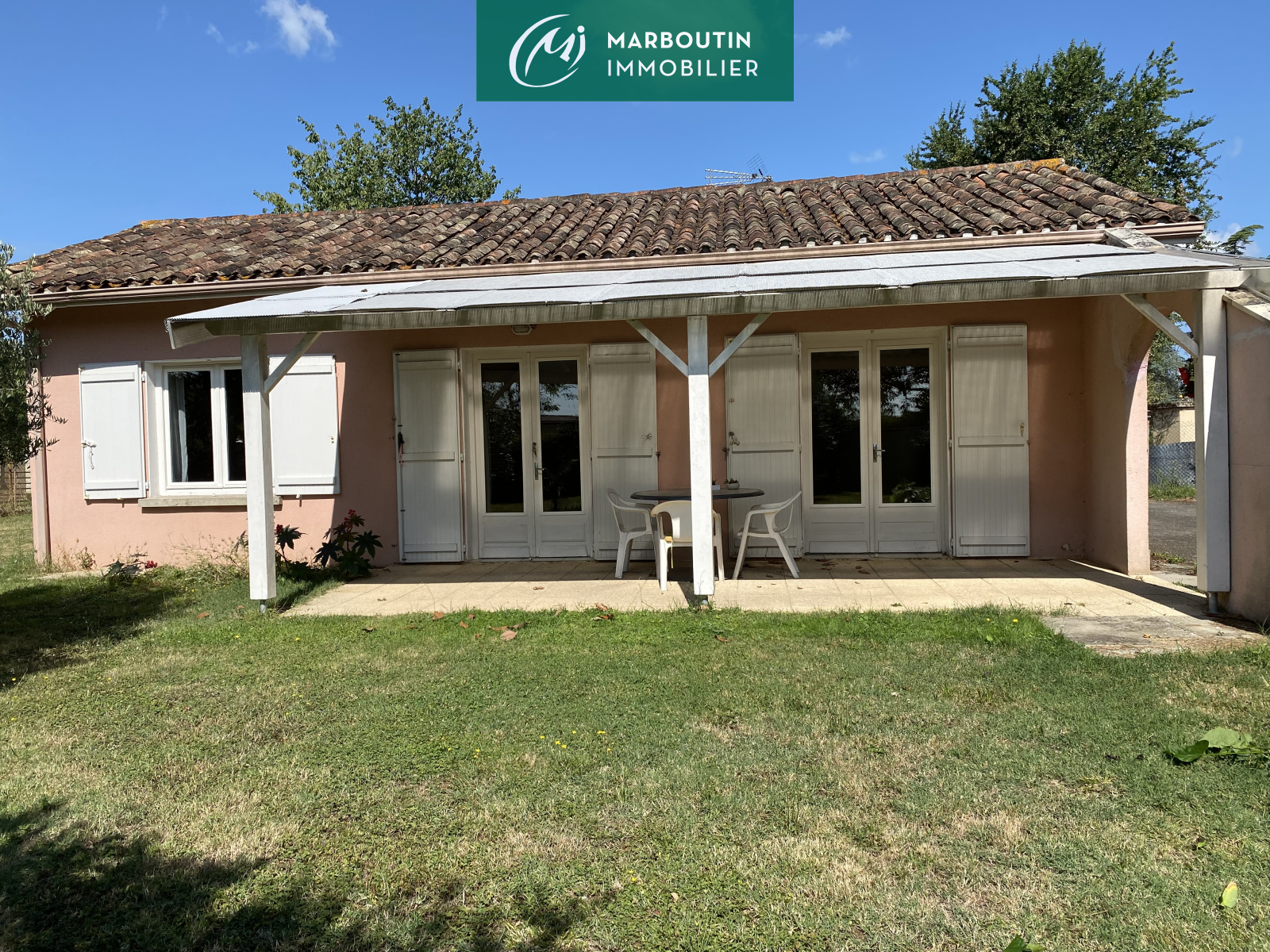 Exclusivité MARBOUTIN, A Marmande,venez découvrir cette agreable maison de plain pied comprenant un salon/séjour, une cuisine, une chambre, un bureau, une salle d'eau, un cellier, une terrasse couverte, un garage et terrain clos de 855m²