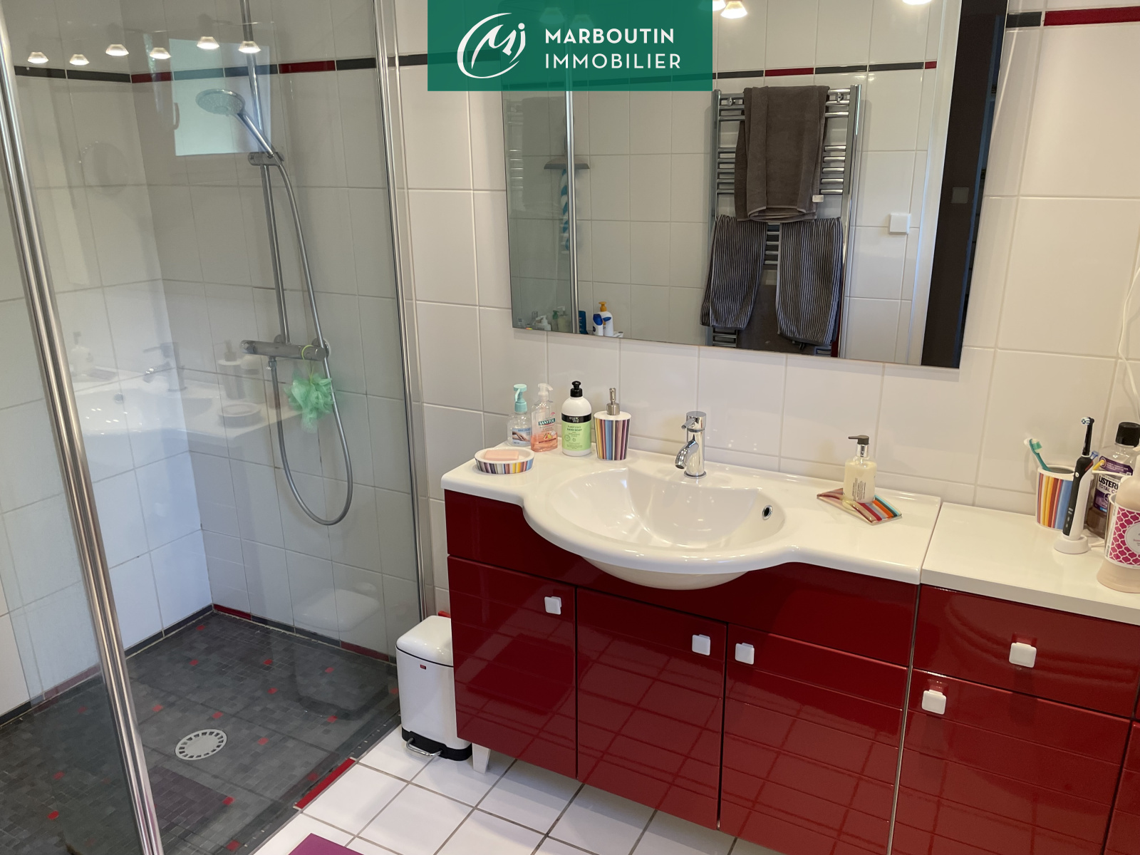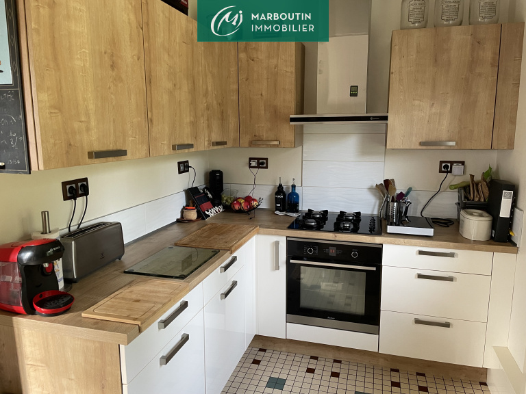 Belle maison de campagne de 103 m² habitables comprenant un séjour de 25.5 m² avec poele à bois, une cuisine équipée, 3 chambres allant de 9.5 m² à 11.5 m² dont une suite parentale avec dressing, un bureau , 2 salles de bains avec WC, et une buanderie.