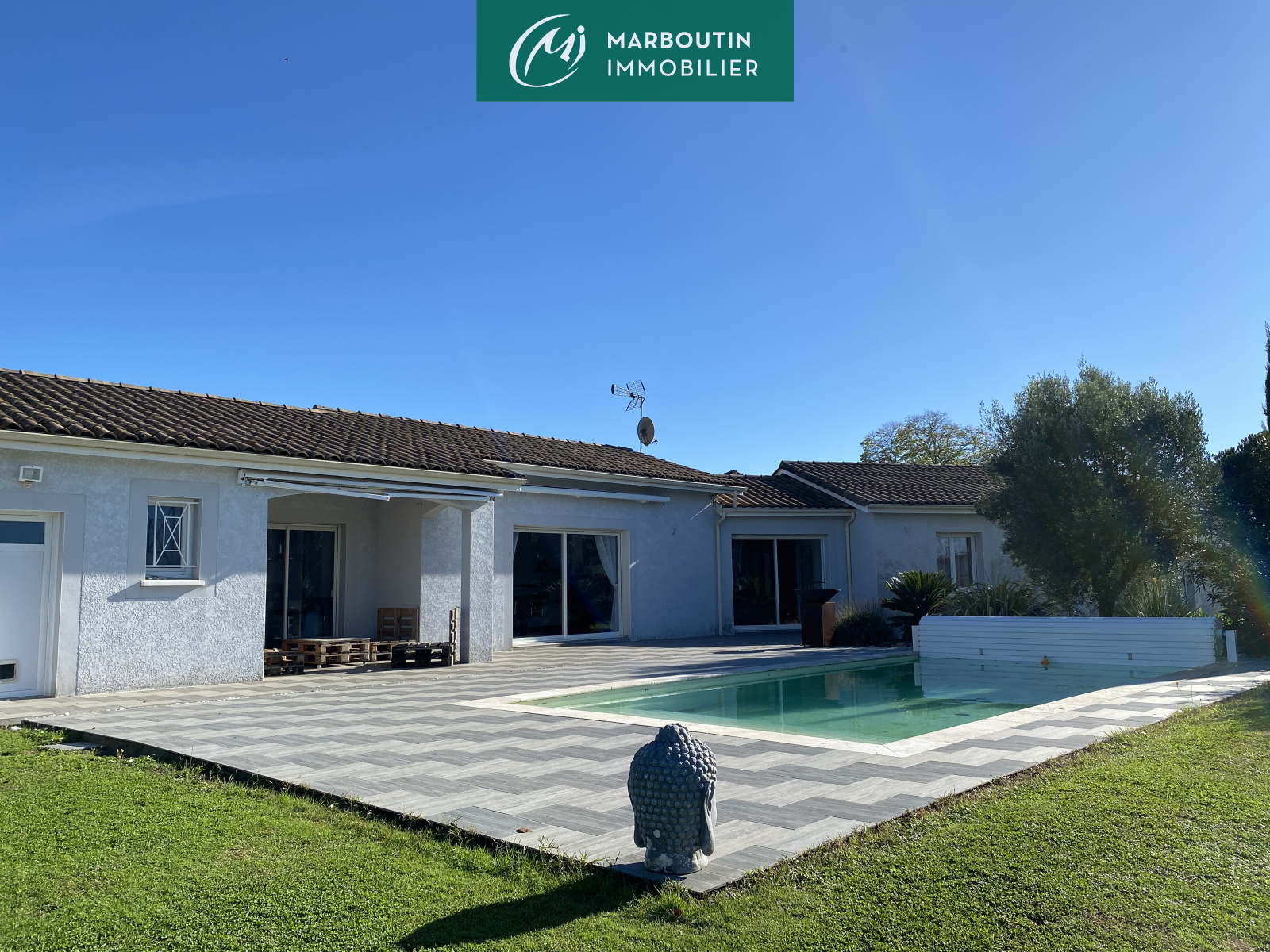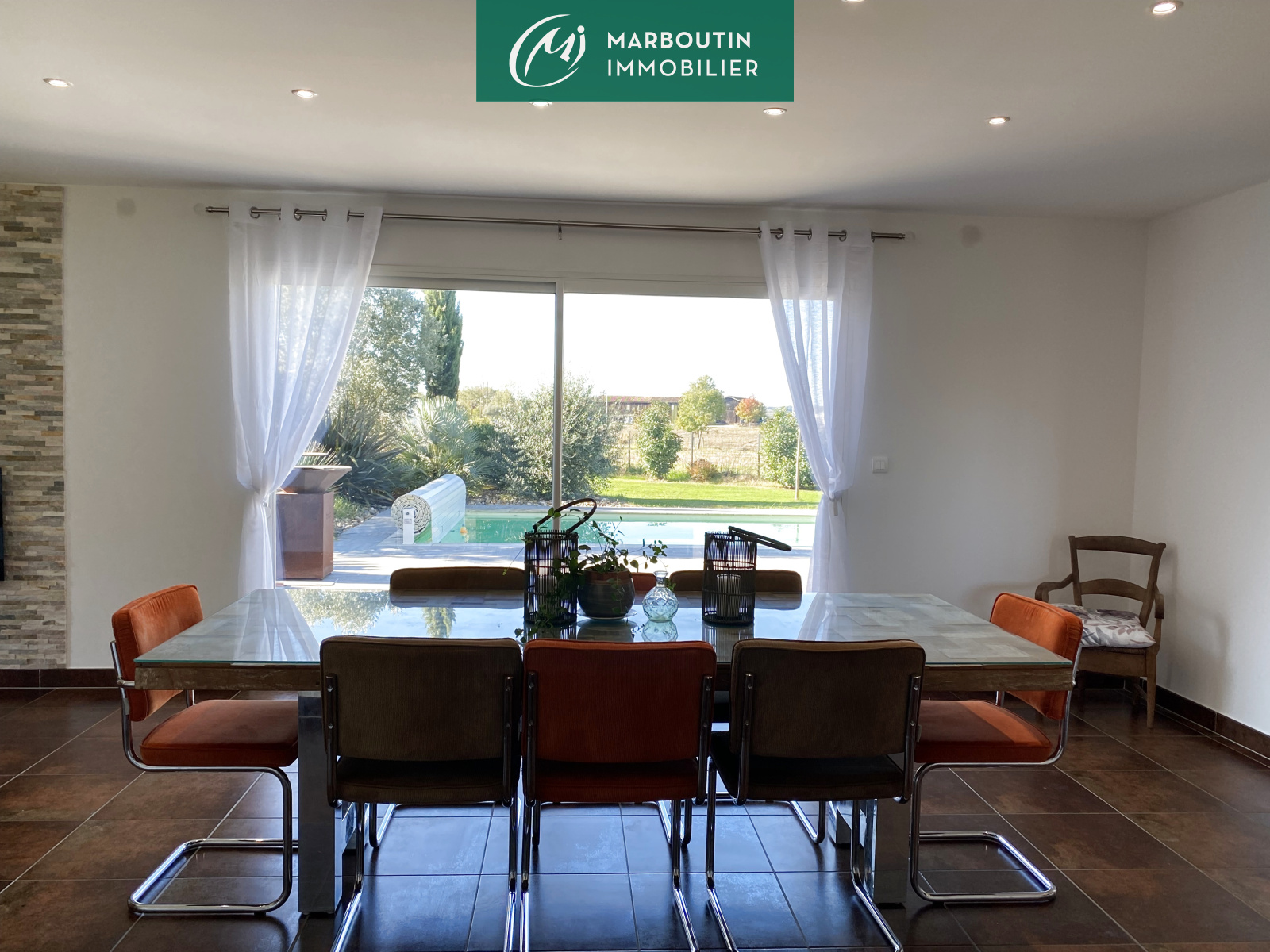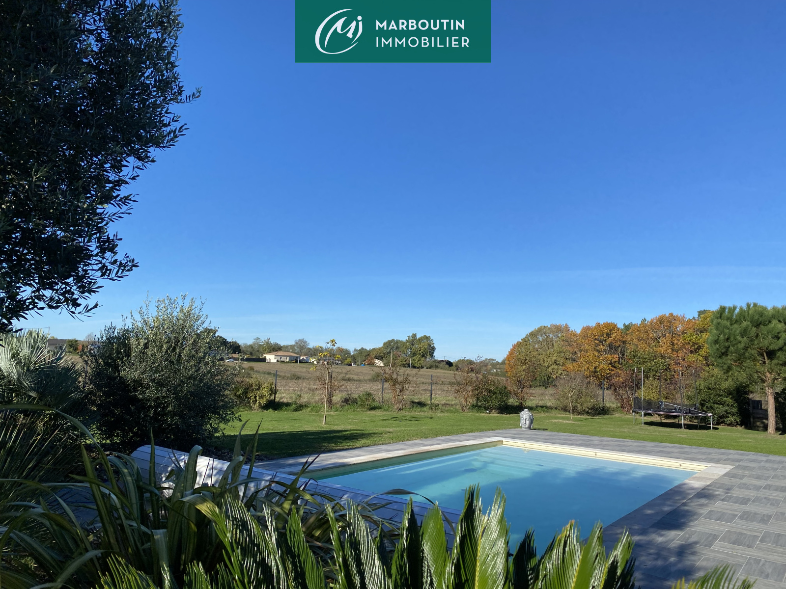 Exclusivité Marboutin ! Entre Marmande et Casteljaloux proche de l'axe autoroutier, venez découvrir cette magnifique villa contemporaine entièrement connectée, elle vous offrira un confort optimal avec des prestations de qualités. Elle se compose d'une entrée avec vestiaire, des WC avec lave-mains, d'un bureau, d'une grande pièce à vivre de 70 m² avec cuisine équipée ouverte, le tout baignée de lumière avec accès direct sur sa belle terrasse entièrement carrelée avec piscine chauffée. La partie nuit est composée d'un couloir desservant une suite parentale avec salle d'eau privative et dressing, deux chambres supplémentaires, une salle de bain avec douche et baignoire et un WC séparé. Cette maison dispose également d'une buanderie, d'un cellier, d'un grand garage d'environ 40 m² avec portail automatique, d'une grande terrasse équipée de 2 stores et d'une partie couverte donnant sur la piscine chauffée par pompe àchaleur et securisée avec un volet roulant. Cette maison est équipée d'une système de chauffage au sol par pompe à chaleur aerothermie et la production d'eau chaude par un chauffe-eau thermodynamique. L'ensemble se trouvant sur un terrain d'environ 3200 m² entièrement cloturé et arboré avec portail eléctrique. A visiter rapidement !